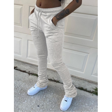 Lovely Sexy Hooded Collar Fold Design Grey Two Piece Pants Set