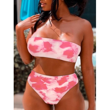 Lovely Casual Tie-dye Patchwork Pink Two-piece Swimsuit