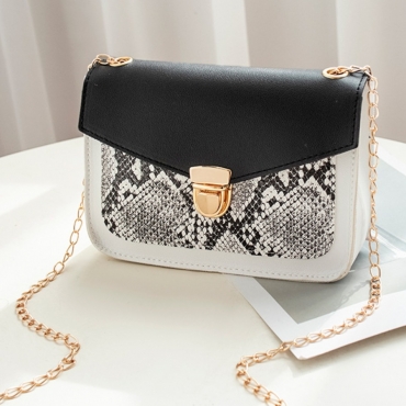 Lovely Casual Snake Print Metal Accessories Decoration Black Crossbody Bag