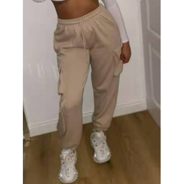 Lovely Casual Drawstring Side Pocket Apricot Pants