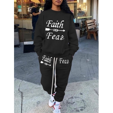 Lovely Casual Letter Print Drawstring Black Two Piece Pants Set