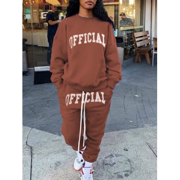 Lovely Casual Letter Print Drawstring Coffee Plus Size Two-piece Pants Set