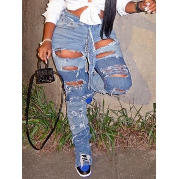 Lovely Street Raw Edge Broken Holes Blue Jeans
