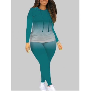 Lovely Trendy Hooded Collar Gradient Green Plus Size Two-piece Pants Set