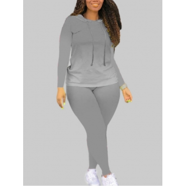 Lovely Trendy Hooded Collar Gradient Grey Plus Size Two-piece Pants Set