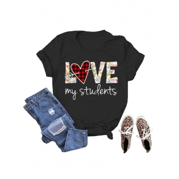 Lovely Street Letter Print Patchwork Black Plus Size T-shirt