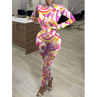 Lovely Casual Geometric Print Patchwork Multicolor One-piece Jumpsuit(No-positioning Printing)