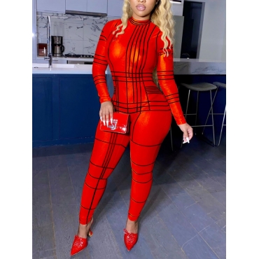 Lovely Chic O Neck Geometric Print Red One-piece Jumpsuit