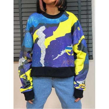 Lovely Casual Starry Sky Print Patchwork Blue Hoodie