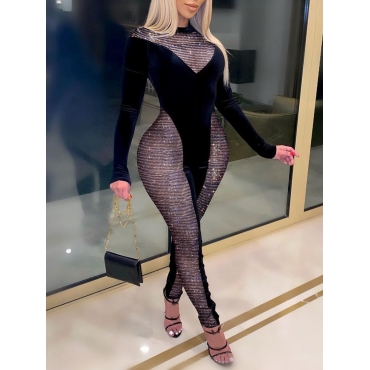 Lovely Sexy Half A Turtleneck Patchwork See-through Black One-piece Jumpsuit