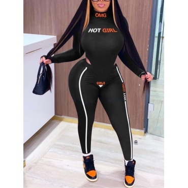 Lovely Trendy Striped Letter Print Black Two Piece Pants Set