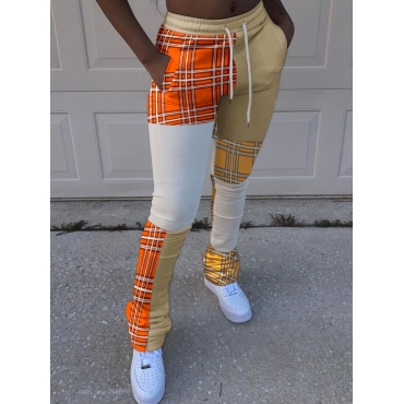 Lovely Casual Plaid Print Patchwork Khaki Pants