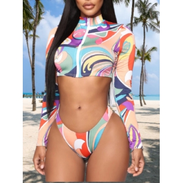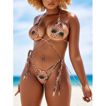 Lovely Sexy Color-lump Patchwork Rose Red Two-piece Swimsuit