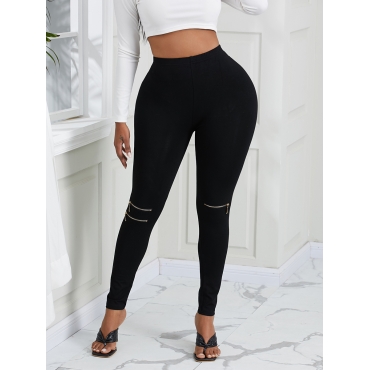 Lovely Street High-waisted Zipper Design Black Leggings