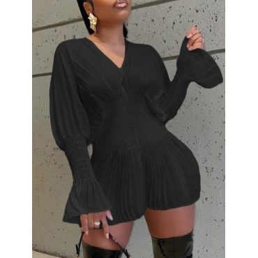 Lovely Stylish Flared Fold Design Black Mini Plus Size Dress