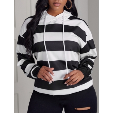 Lovely Casual Hooded Collar Striped Black Hoodie