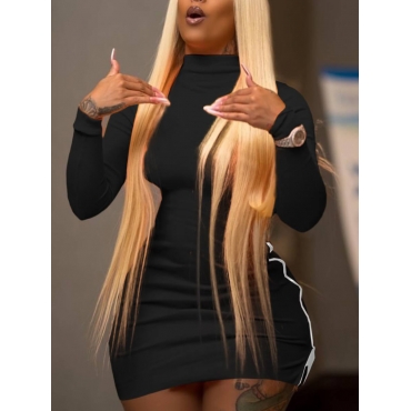 Lovely Casual Turtleneck Basic Skinny Black Mini Plus Size Dress