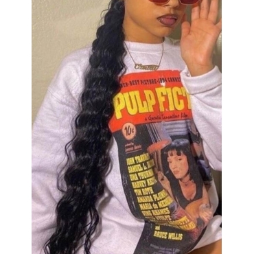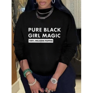 Lovely Street O Neck Letter Print Black Hoodie