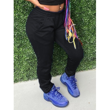 Lovely Casual Mid Waist Pocket Design Black Pants
