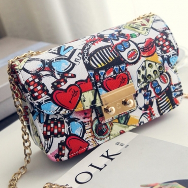 Lovely Casual Heart-shaped Print Patchwork Red Crossbody Bag