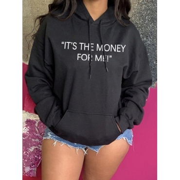 Lovely Casual Letter Print Kangaroo Pocket Black Hoodie
