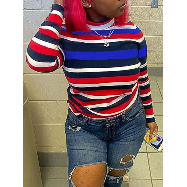 Lovely Casual Striped Patchwork Red T-shirt