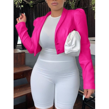 Lovely Formal Turndown Collar Button Design Pink Coat