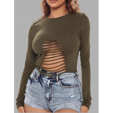 Lovely Sexy O Neck Hollow-out Black Green T-shirt