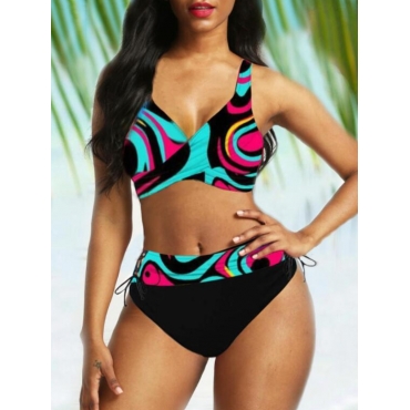 Lovely Sexy Bandage Design Patchwork Black Tankini