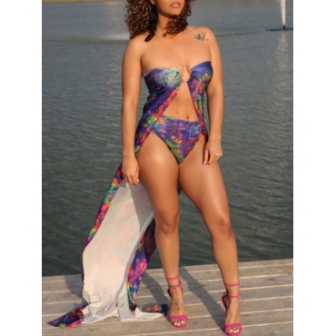 Lovely Stylish Tie-dye Metal Accessories Decoration Purple Two-piece Swimsuit