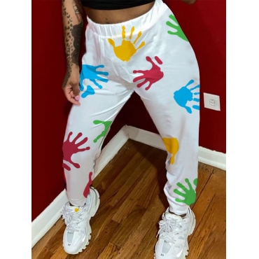 Lovely Casual Mid Waist Palm Tie-dye White Pants
