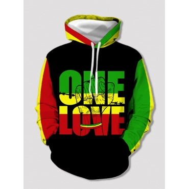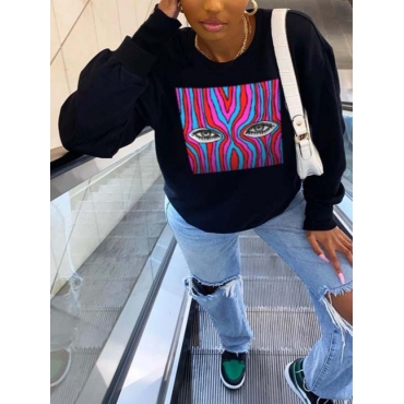 Lovely Trendy Eye Print Patchwork Black Hoodie
