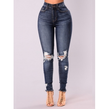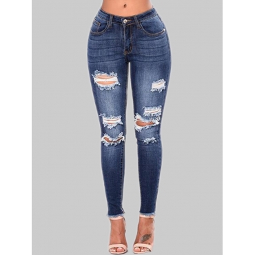 Lovely Street Broken Holes Raw Edge Deep Blue Jeans