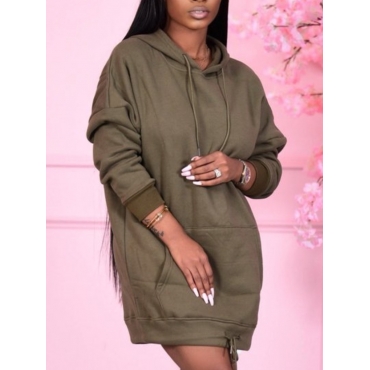 Lovely Casual Kangaroo Pocket Drawstring Army Green Knee Length Dress