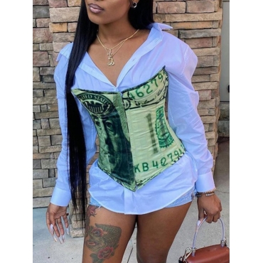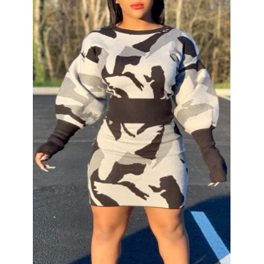 Lovely Casual O Neck Camo Print White Two Piece Skirt Set
