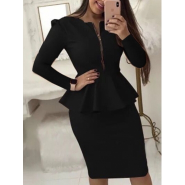 Lovely Formal Zipper Flounce Design Black Two Piece Skirt Set