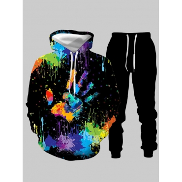 Lovely Casual Hooded Collar Print Black Plus Size Two-piece Pants Set