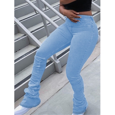Lovely Casual Fold Design Skinny Canal Blue Jeans