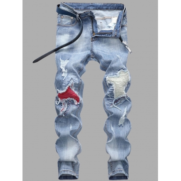 Lovely Street Color-lump Patchwork Baby Blue Men Jeans