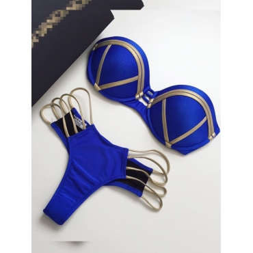 Lovely Sweet High-waisted Hollow-out Blue Two-piece Swimsuit