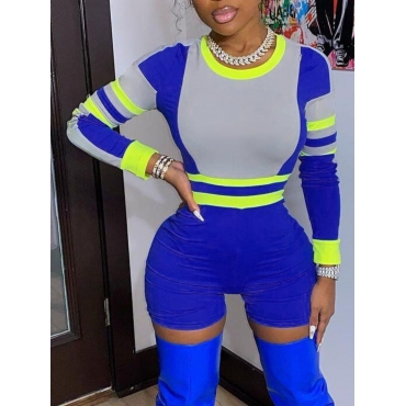 Lovely Sportswear O Neck Patchwork Blue One-piece Romper