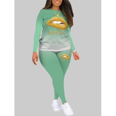 Lovely Casual Lip Print Light Green Plus Size Two-piece Pants Set