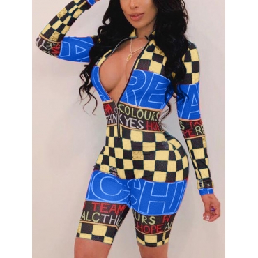 Lovely Sportswear Plaid Print Zipper Design Yellow One-piece Romper