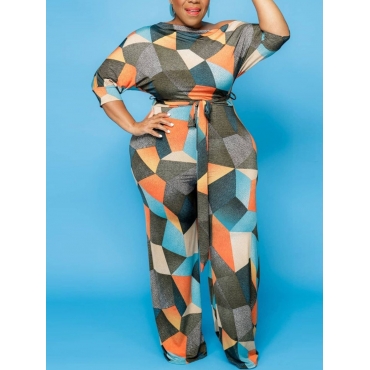Lovely Casual Three Quarter Sleeve Print Orange Plus Size One-piece Jumpsuit