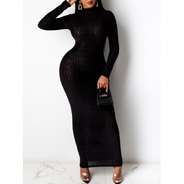 Lovely Party O Neck Geometric Print Black Ankle Length Dress