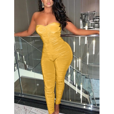 Lovely Sexy Off The Shoulder Fold Design Yellow One-piece Jumpsuit