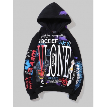 Lovely Street Hooded Collar Letter Print Black Hoodie(Batch Print)