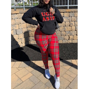 Lovely Casual O Neck Letter Print Black Two Piece Pants Set