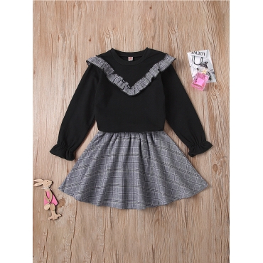 Lovely Sweet Flounce Design Plaid Print Black Girl Two Piece Skirt Set