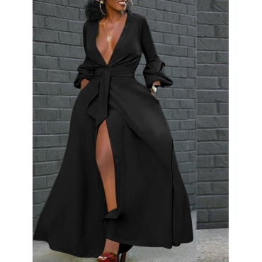 Lovely Party High Split Lace-up Black Floor Length A Line Plus Size Dress